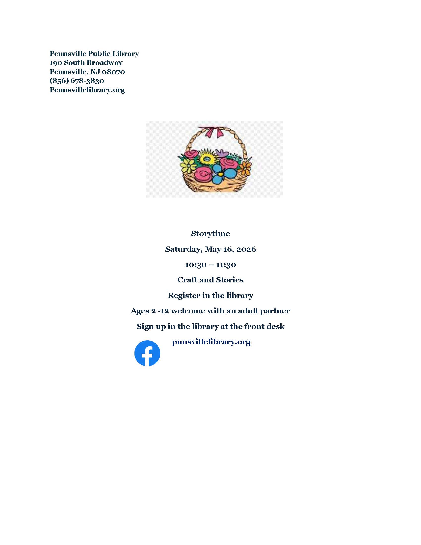 The library follows the Pennsville Public School District and the Salem County Offices schedules for closings and late openings. You can check online at www.psdnet.org or www.salemcountynj.gov  . We will post information on Facebook and this website as soon as possible. Be safe and read a good book.